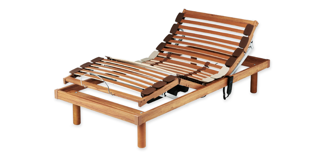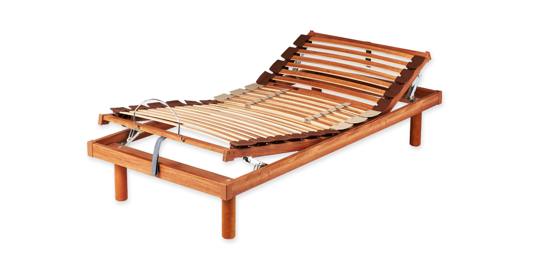le réglage de la fermeté. Chaque latte est fixée à la structure à l’aide de supports flexibles en caoutchouc qui